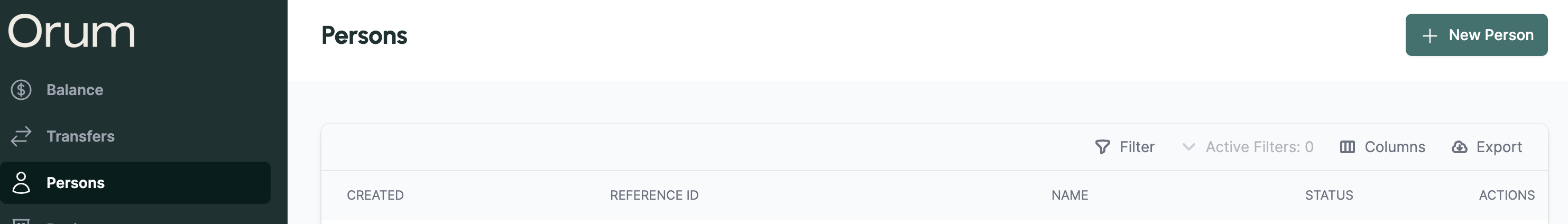 Now, you can add a Person, Business, or Account directly through the Orum Portal!To add Persons & Businesses, please navigate to the “Persons” or “Businesses” page in the Orum portal and select the ”+ New Person” or ”+ New Business” button in the top right corner.