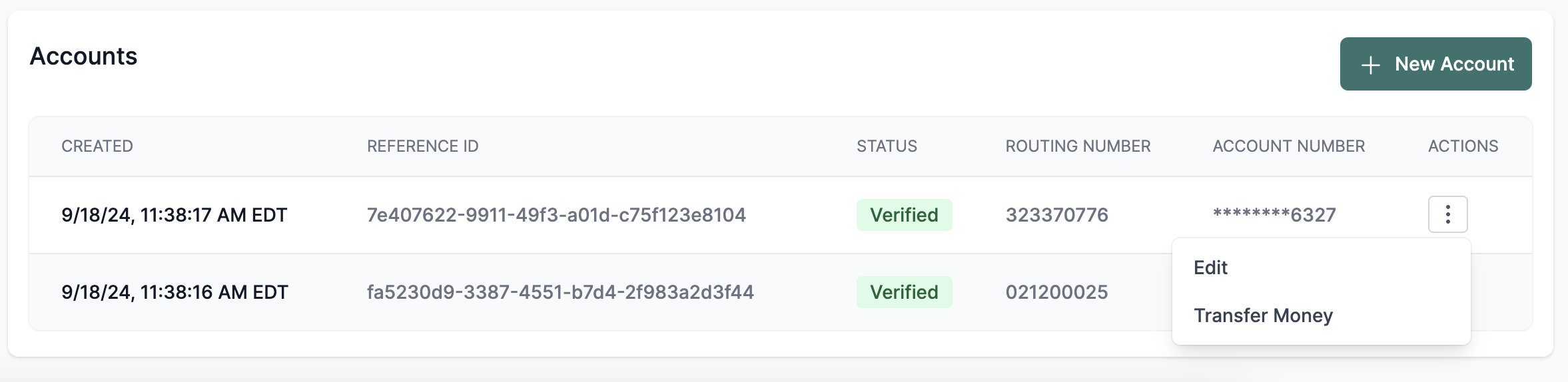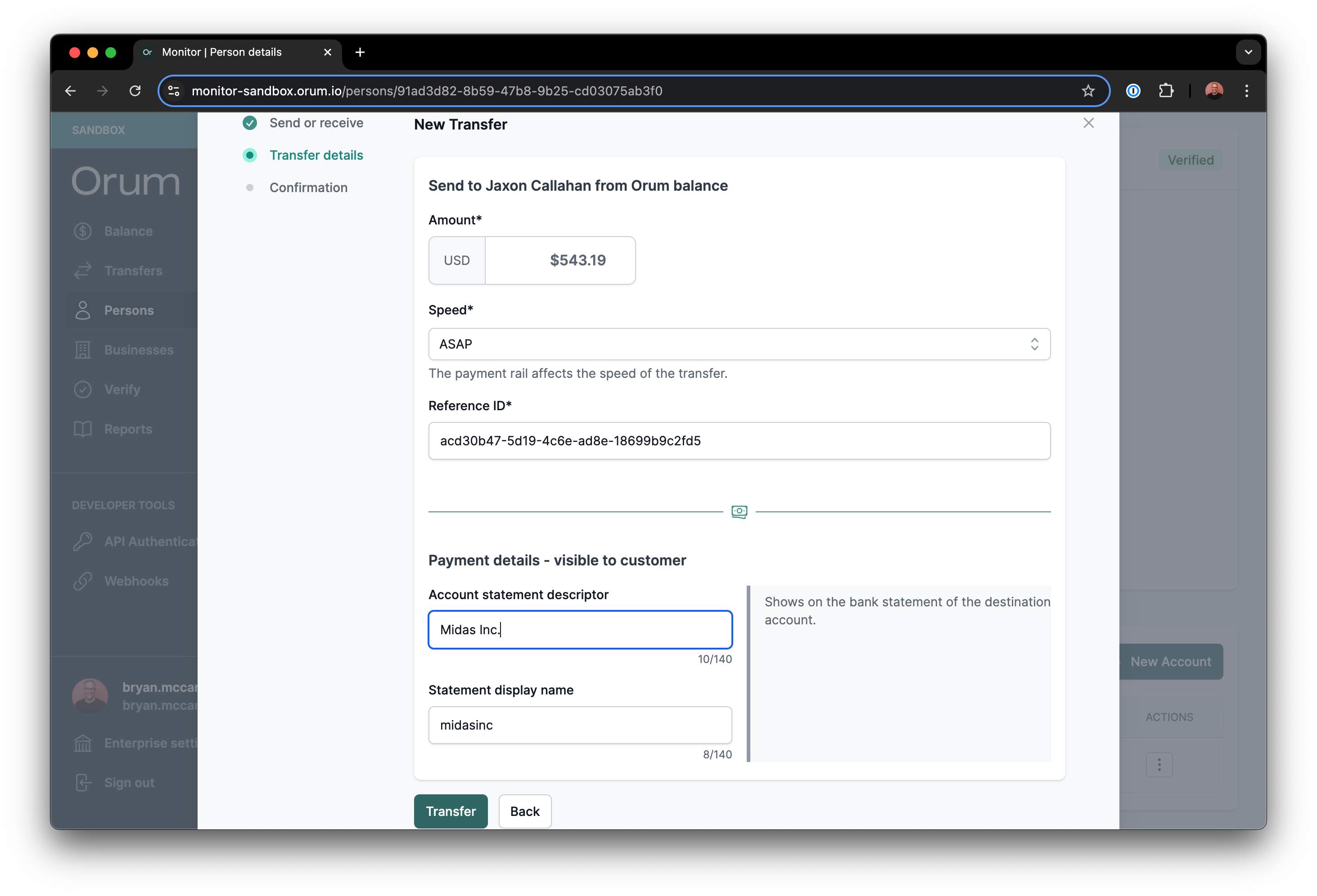 Once the file has completed processing, monitor the status of the initiated transfers in the Transfer Details table.