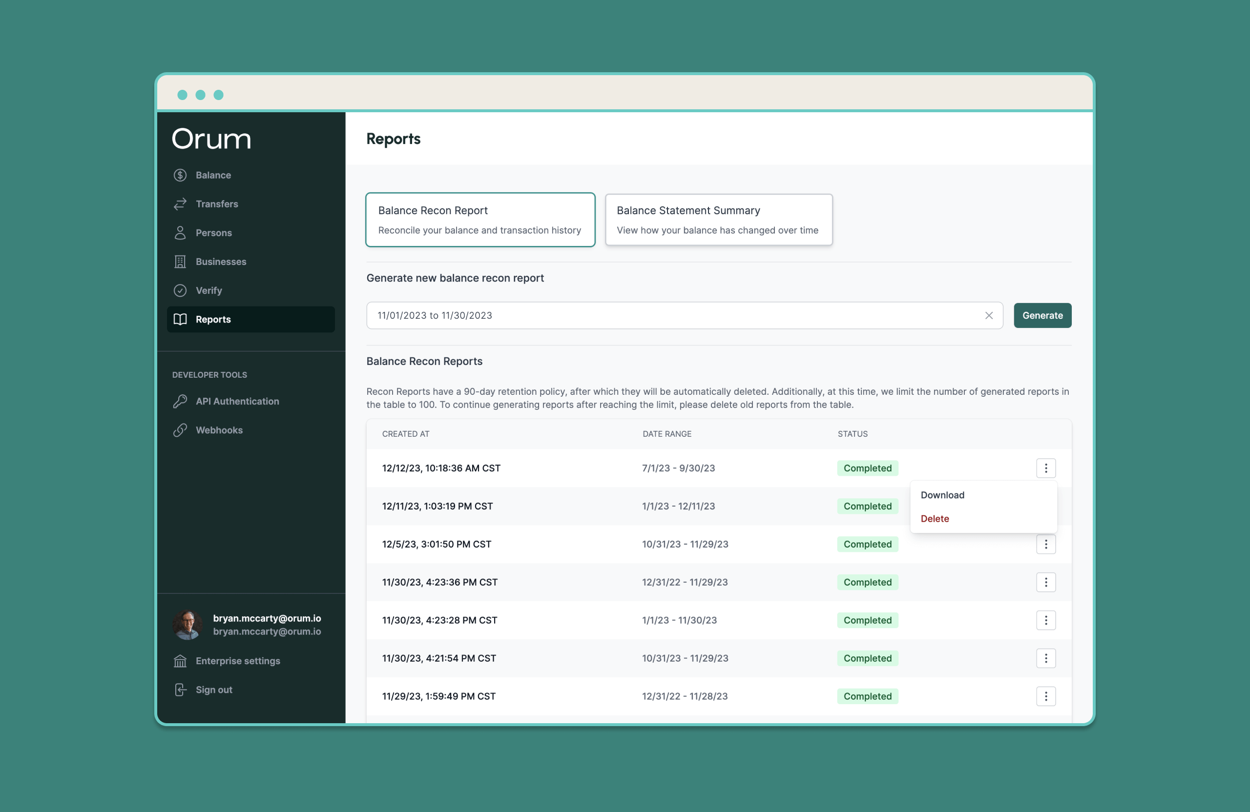 Balance Recon Report